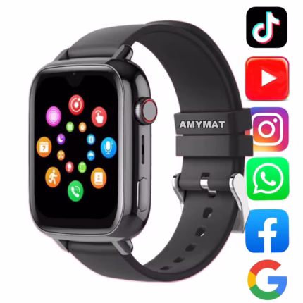 Ceas Smartwatch Wonlex AMYMAT KT34 cu GPS, Facebook TikTok, Youtube, Ritm-cardiac, WhatsApp Ecran Tactil de 1.91 inch, Meniu in limba Romana Deblocare Faciala Apel Video si Functii Avansate pentru Copii WIFI, bluetooth, apa IP67, Android, IOS, SOS