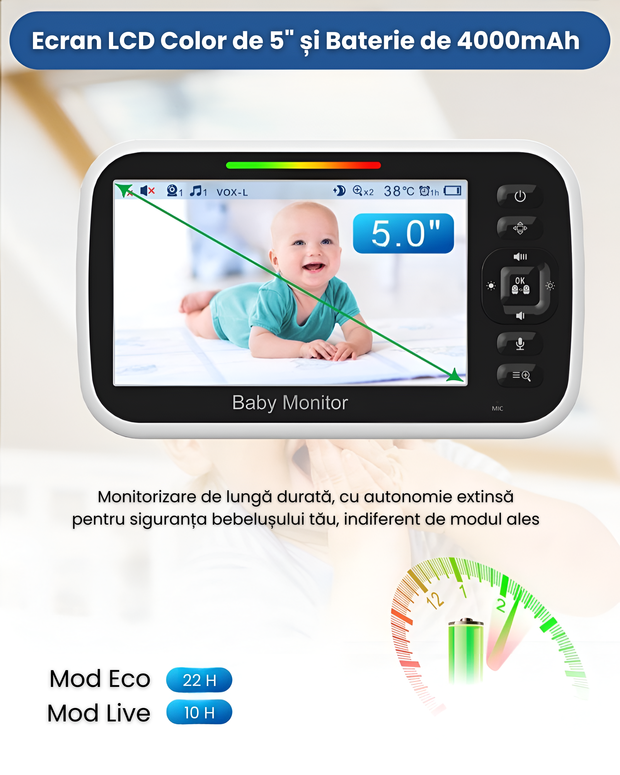Ecran LCD color de 5” si Baterie de 4000mAh