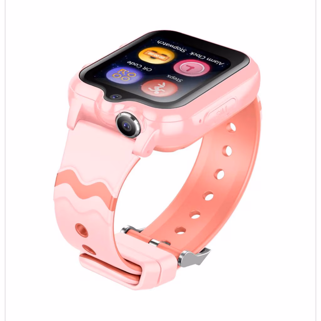 Ceas Smartwatch Pentru Copii AMYMAT KT15 PRO, 4G WhatsApp Argintiu, cu localizare GPS, apelare video, rezistent la apa si monitorizare spion tip telefon Roz