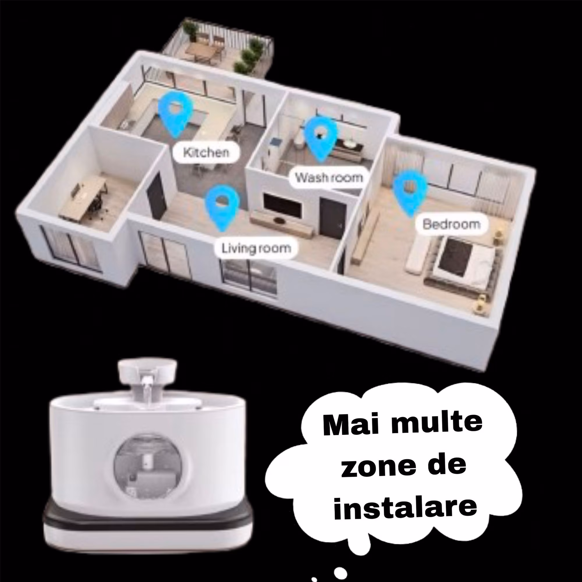 • Design wireless cu baterie integrata de 5200mAh – functioneaza independent de priza, asigurand siguranta si libertate in plasare oriunde in casa.