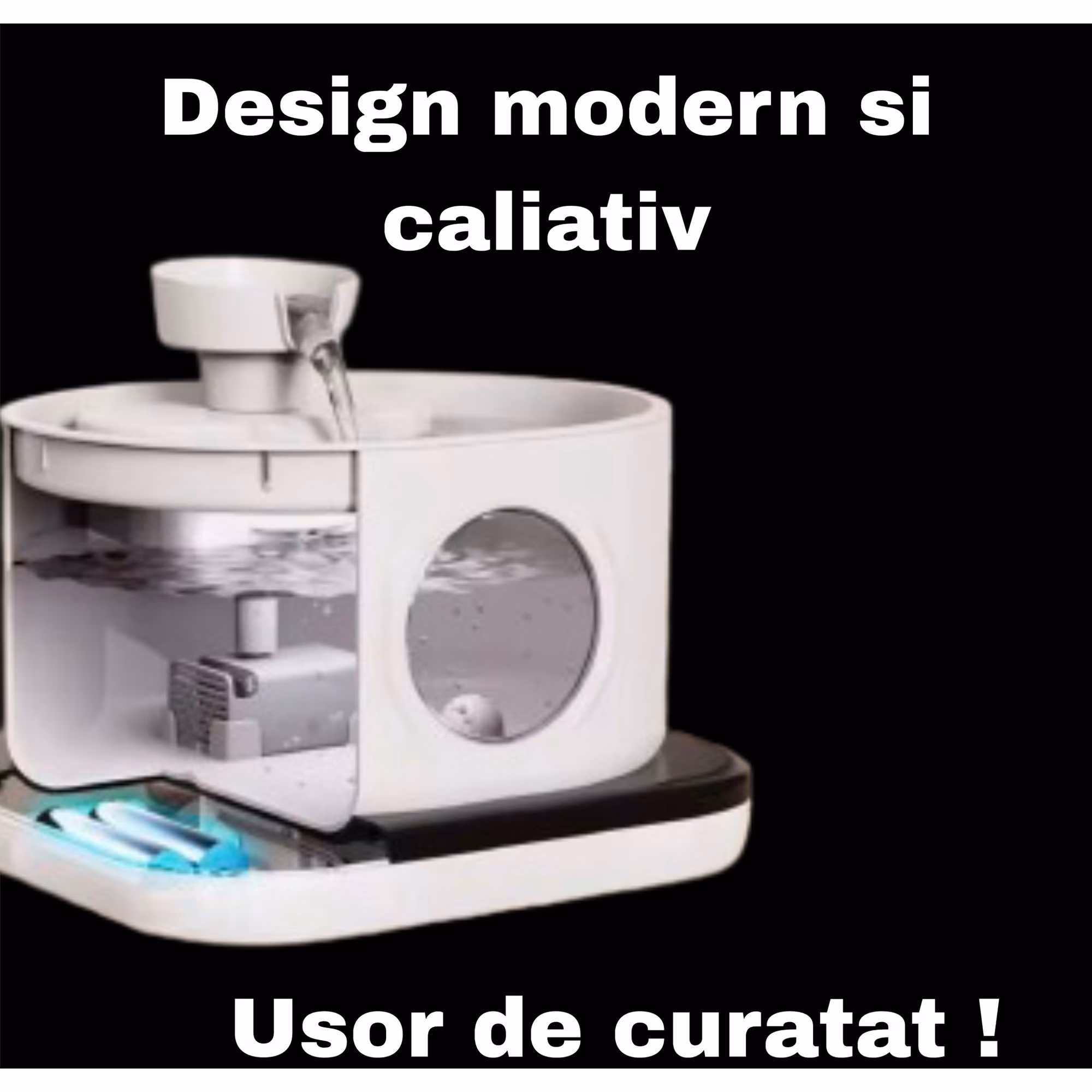 | Caracteristici cheie | Non-toxic Curatare usoara Rezistent Usor de curatat Automat Acces usor Compartiment apa Filtrarea continua a apei prin filtru de carbon activ mentine gustul natural al apei Design atractiv, prietenos, usor de intretinut, curatat si dezifectat. |